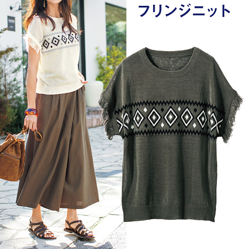 【SALE】 【レディース】 フリンジ使いフレンチスリーブニット – セシール
