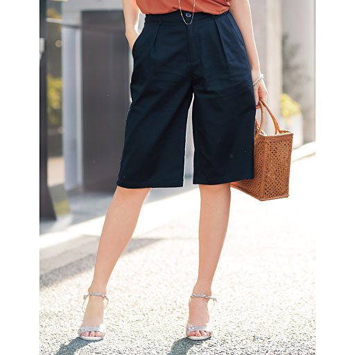 脚を綺麗に見せる絶妙な裾幅と丈感がポイントの、大人のためのハーフパンツ。