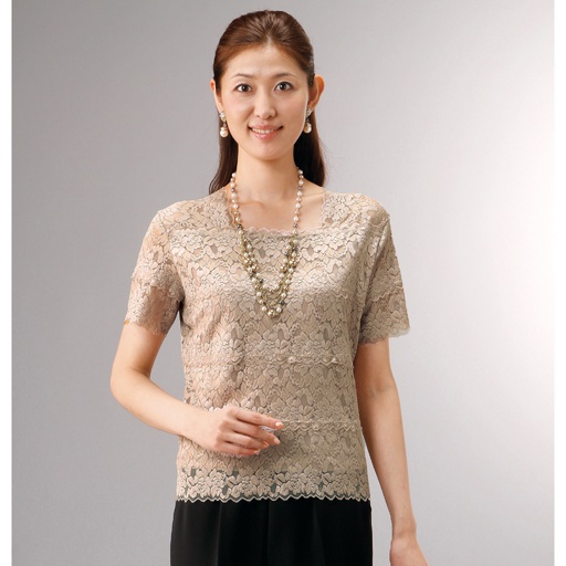 【レディース】 ストレッチレース半袖プルオーバー – セシール